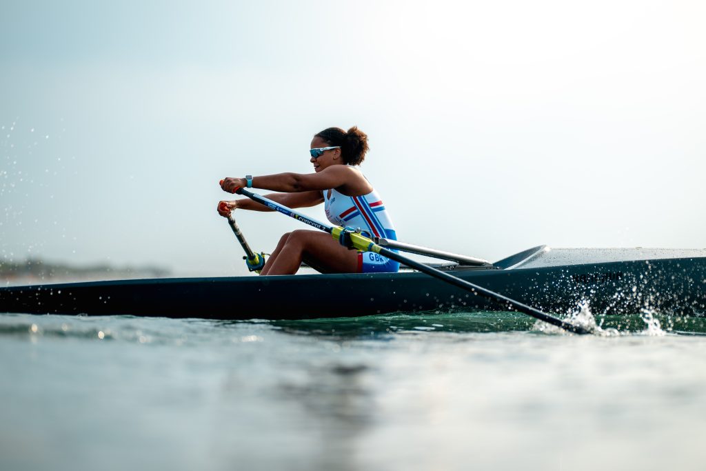 Finishing seventh fastest in a time of 03:03.51 was Isabel Soyinka in the U19 Coastal Women’s Solo (CJW1x). Placing in the top eight, she is straight through to the last 16. The U19 Coastal Men’s double sculls (CJM2x) of Edwin Van Lopik and Valen Giachetto were seventh in a time of 02:39.10 and progress to the knockout stages.