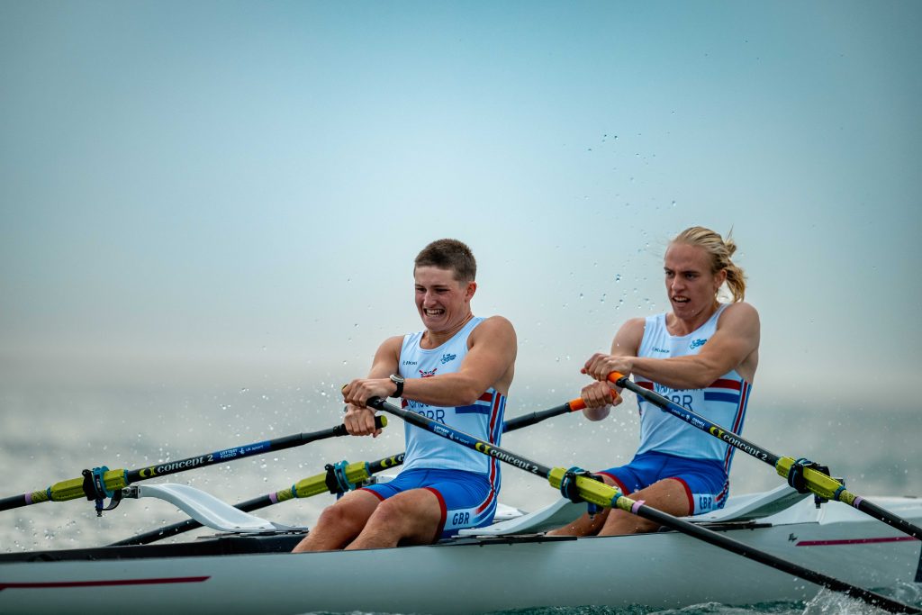 The final U19 race saw Thomas Biddle and Olivia Hodgson finish eighth overall taking the final direct last 16 spot in the U19 Coastal Mixed double sculls (CJMix2x) in a time of 02:38.51.