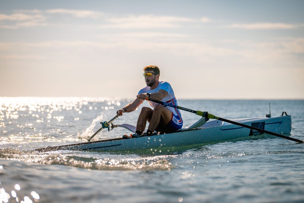 It was a tough race for James Cox in Coastal Men’s Solo (CM1x), despite a good start and a powerful sprint finish he couldn’t match the pace of the German sculler and leaves the competition in the last 16. Also leaving in the last 16 are the Coastal Mixed double sculls (CMix2x) of Cameron Buchan and Natacha Searson. They had a strong start to take an early lead but an equipment issue led to them losing momentum in the second half and they lost out to the Italian crew.