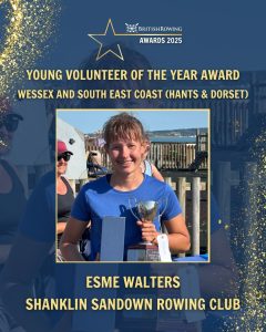She has set up and established the clubs monthly ‘Task Force Tuesdays”, an event which brings parents, rowers, friends and families together to undertake general repairs, cleaning and support. Esme also organised two Love rowing initiatives – welcoming a Nottingham community group down to enjoy rowing on the sea in the summer, and organising the club to support The Big Row Hike Row challenge in October. For the Isle of Wight rowing community, she organises the Annual Indoor Rowing Championships.