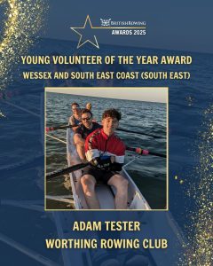 For Adam, Worthing Rowing Club isn’t just a place to volunteer, it’s where he found belonging and purpose. His work has modernised the club, grown participation, preserved history, and built community. He embodies British Rowing’s values of teamwork, being open to all, and commitment.