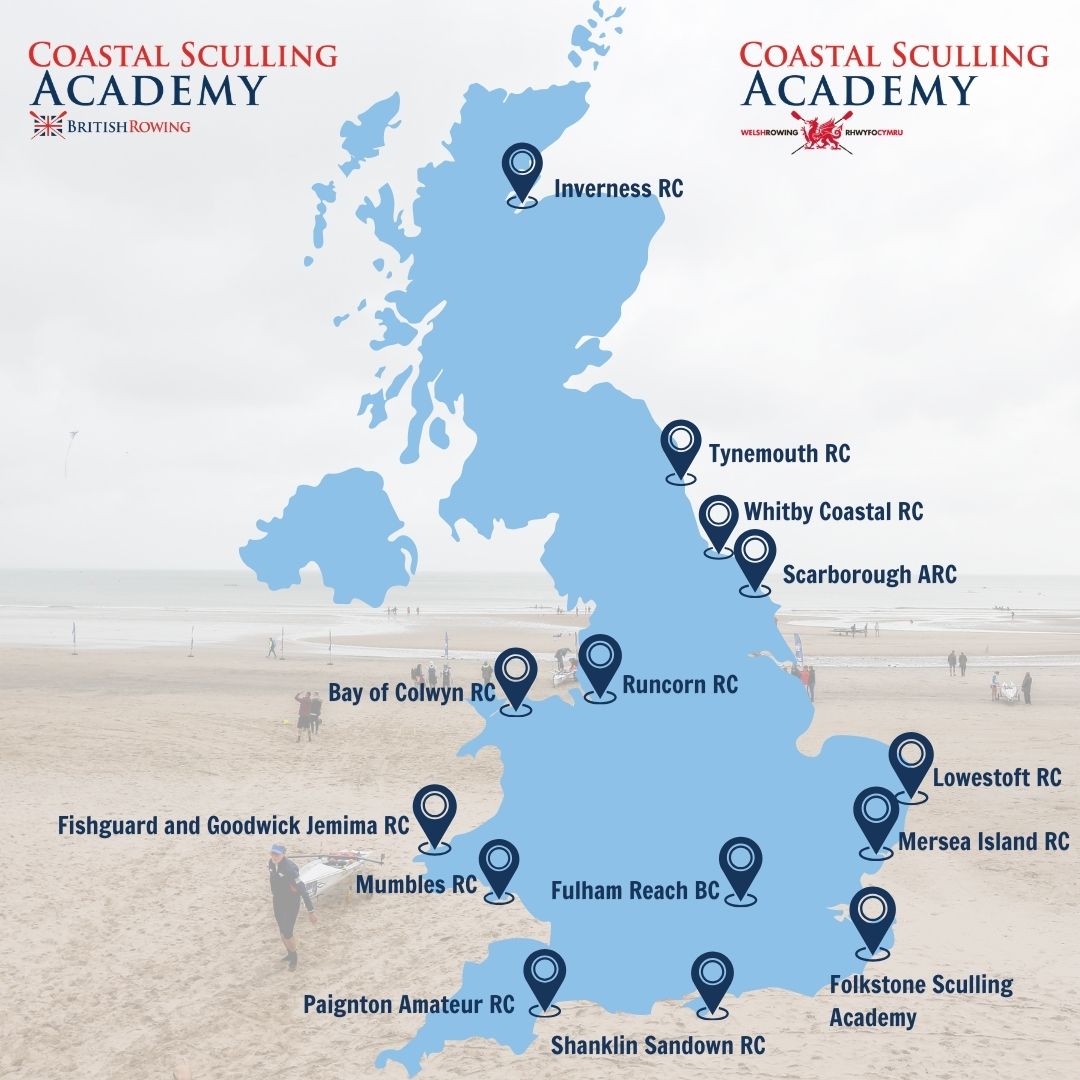 The Coastal Sculling Academies have been created jointly by British Rowing, Scottish Rowing and Welsh Rowing. They are based at rowing clubs and other locations that have been endorsed as providing suitable environments for new and existing coastal and ‘classic’ rowers can learn and develop coastal sculling skills and take part in endurance and/or beach sprint racing.