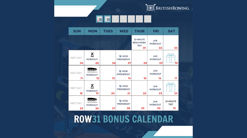 - Day 16 – Go Row Indoor 30-minute workout